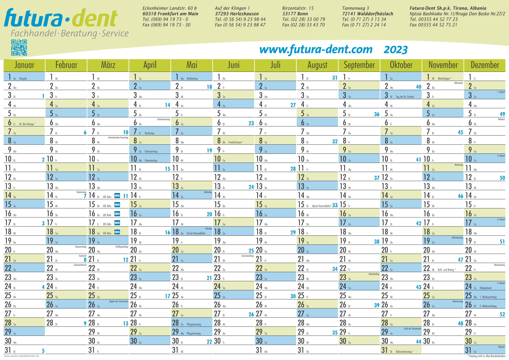 Messetermine im Kalendarium ohne Mehrpreis!