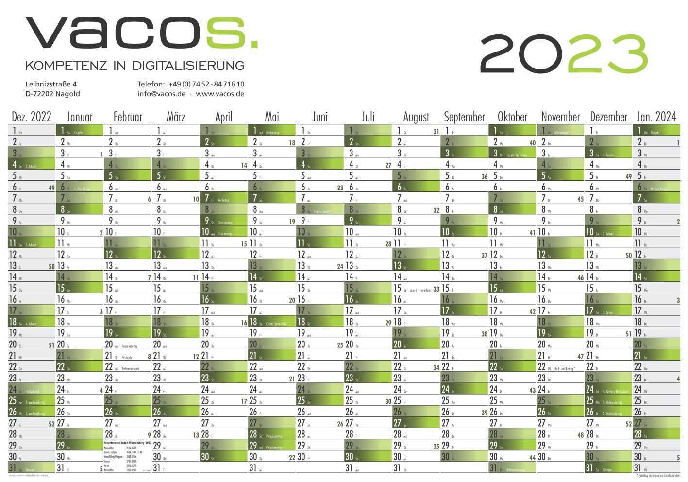 Plakatkalender mit 14 Monatsspalten