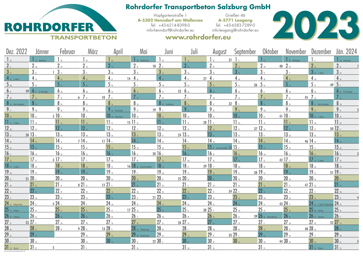 und österreichischen Kalendarium