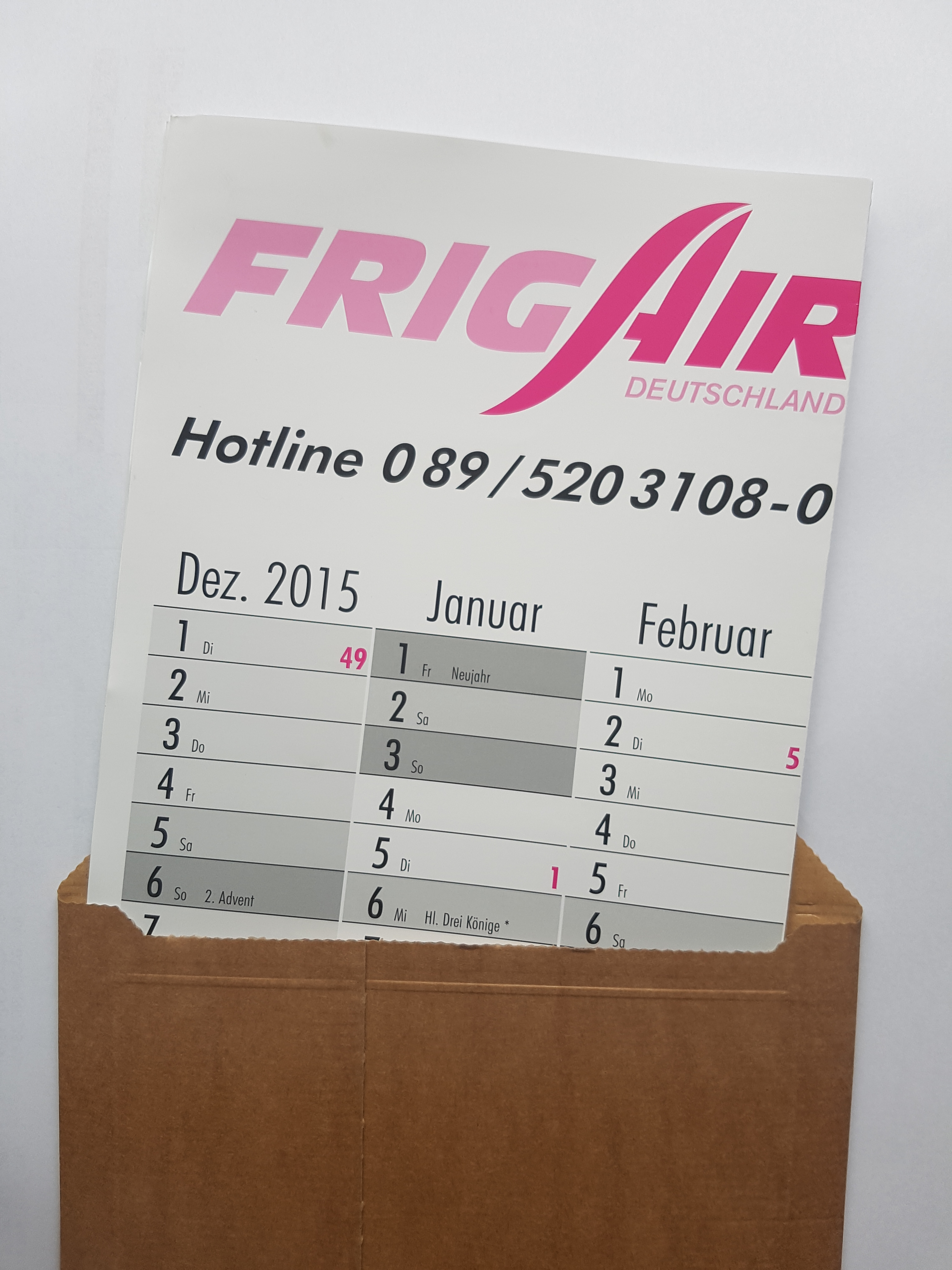 Gefalzte Kalender sind dagegen für 1.60 € Porto per Post als Maxibrief unterwegs.